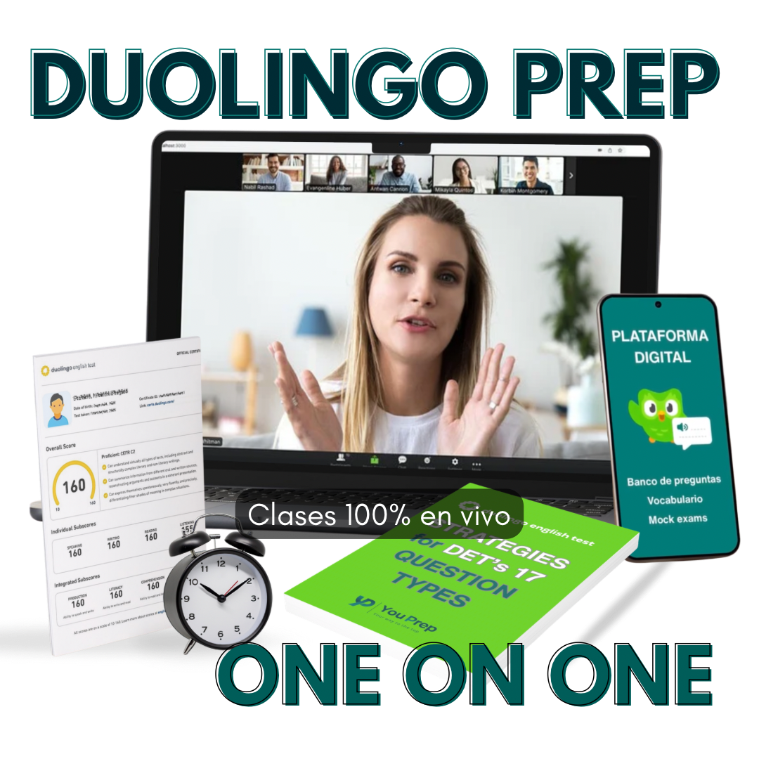 ¡A tu ritmo, a tu medida! Prepárate de manera estratégica con clases 100% personalizadas y obtén la puntuación que necesitas en el Duolingo English Test. Elige tus horarios y frecuencia.
